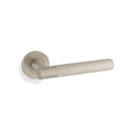 Alexander and Wilks Spitfire door handle features a modern diamond-cut knurled pattern, against a T-bar cylindric stem silhouette, finished with a plain round rose.